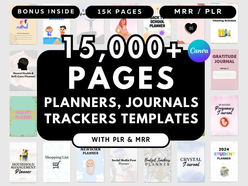 unlock unlimited potential with our ultimate mega bundle a curated collection of 300+ canva templates designed to transform your digital products business! create stunning printable journals effortlessly and take your planning game to the next level.